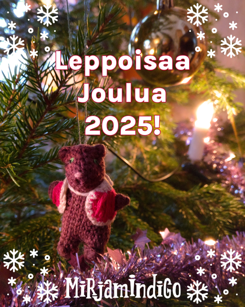Mirjamindigo toivottaa kaikille Leppoisaa Joulua! On taas aika rauhoittua joulun viettoon! Mirjamindigo haluaa toivottaa kaikille teille ihanille asiakkaille jamitä mainioimmille yhteistyökumppaneille rauhaisaa ja leppoisaa Joulun aikaa! Verkkokauppa pyöriä hyrskyttelee täällä tauotta, mutta itse lomailen jouluviikon ja palaan sorvin ääreen jälleen maanantaina 29.12.2025. Siihen mennessä kerkiää siis hyvin näpytellä verkkokauppaan tilauksia sisälle, niin maanantaina pääsen heti […]