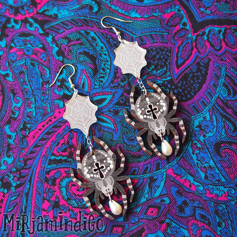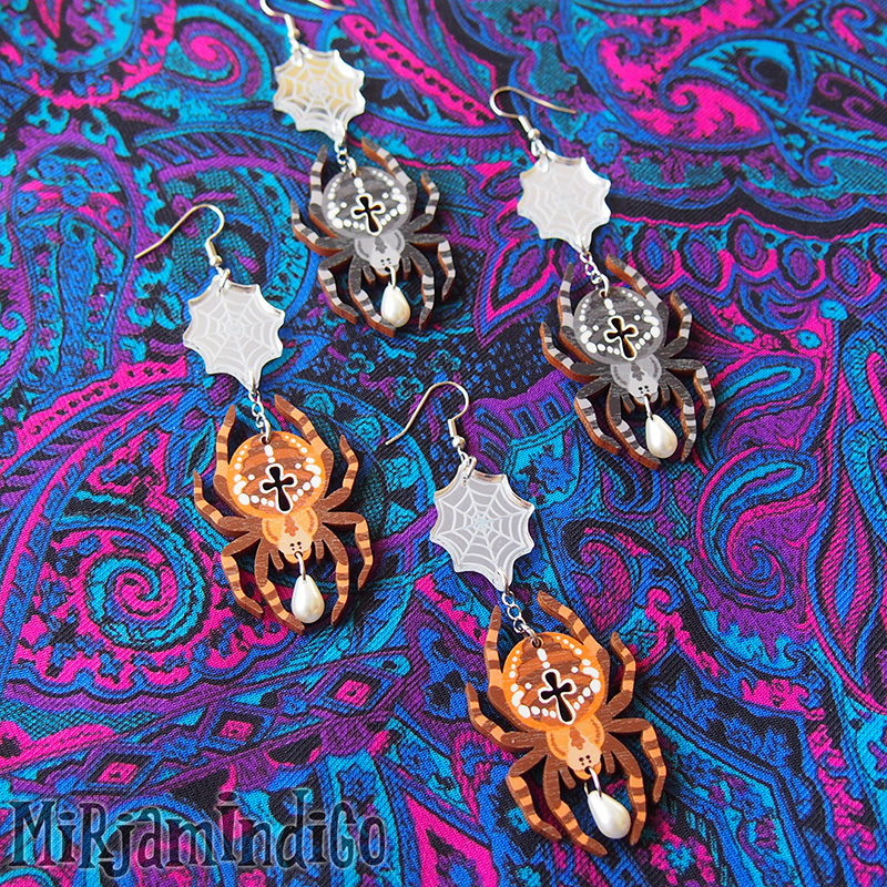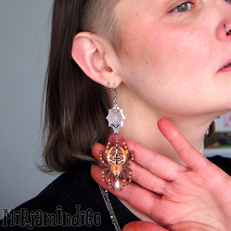 Hämähäkit saatavilla korvakorukoukuilla sekä -renkailla.